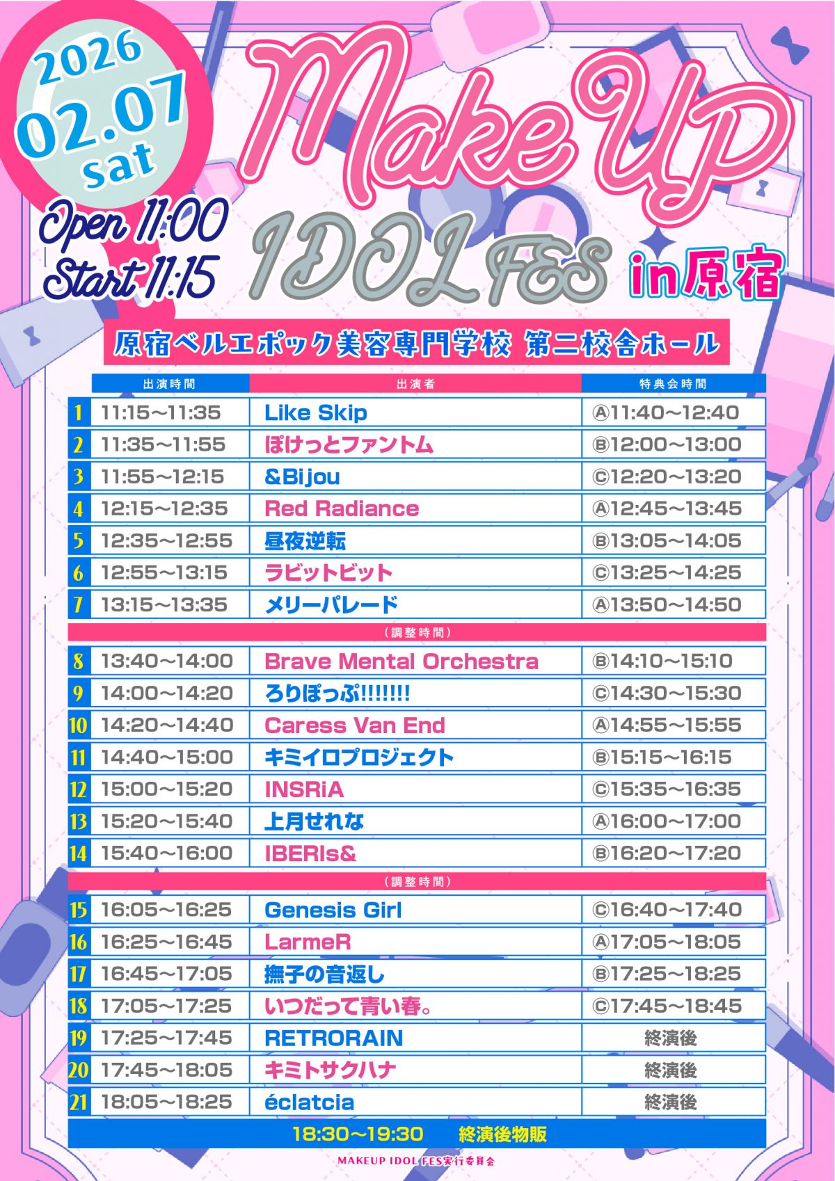 2/7(土)イベント「MAKEUP IDOL FES」タイムテーブル公開!